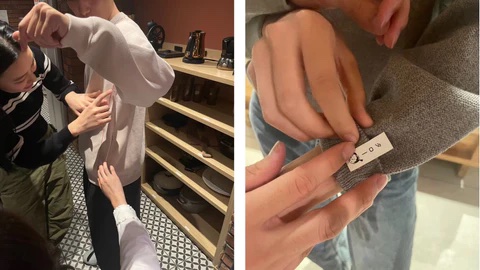 上北沢チーム サンプルが届いた時は、メンバー全員が服を1から制作する事が初めてだったこともあり、形になったワクワク感から、「早く開けよう!」というテンションでした。 開封してすぐ試着をして、ネイバーズ上北沢のハウスメイトに着てもらい実際の着用感などを含めた率直な感想をいただきました。