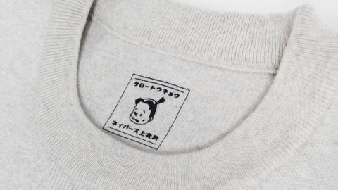 実はこの時、ブランドタグもオリジナルで考えていたので、テストプリントしています。事前の調査で「リラックスできること」や、「着心地が良いこと」が重要視されていたので、敏感になりやすい首元はプリントにてブランドタグを印字することにしました。デザインはネイバーズとタロウのダブルネームだとわかるようにしています。