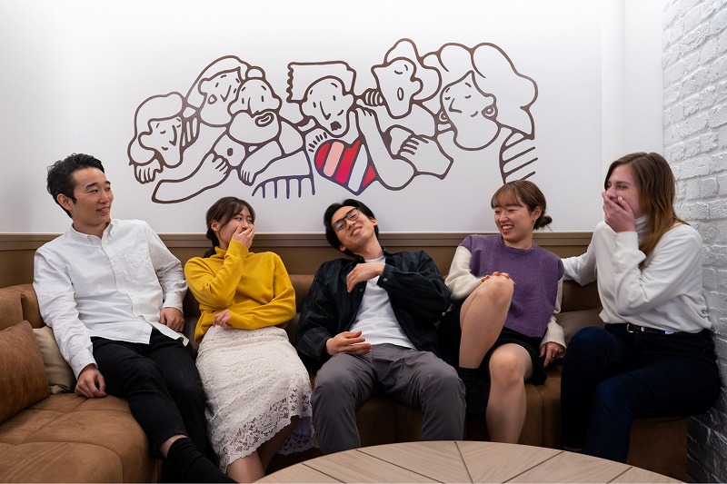 ▲(After)クッションフロアの奥にはソファ席を設置。靴が脱げるようになっていて、よりCHILLできる空間に。上のクッションフロアは飲食禁止ですが、こちらはOKなのでお菓子やお酒を持ち込んでゆったり交流なんてことも。壁面アートと同じ構図で写真を撮ったらインスタ映え…?