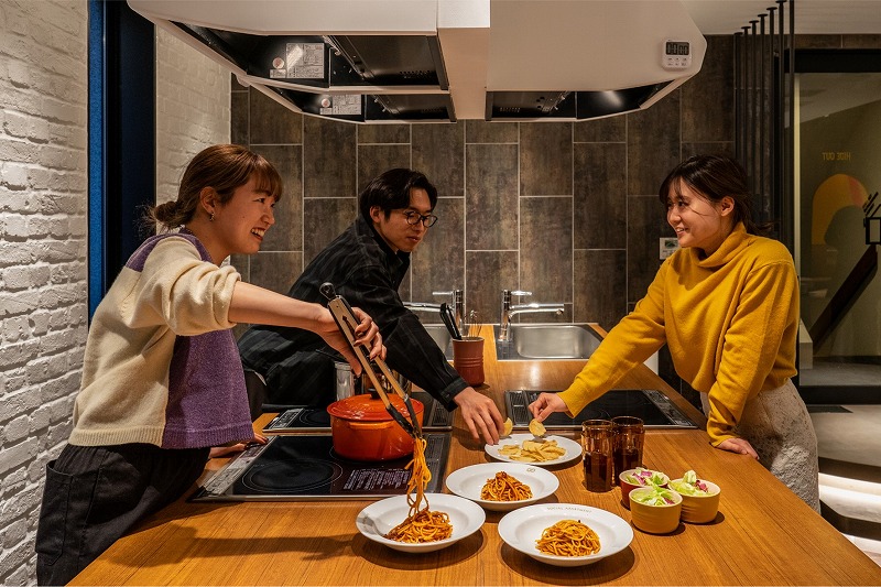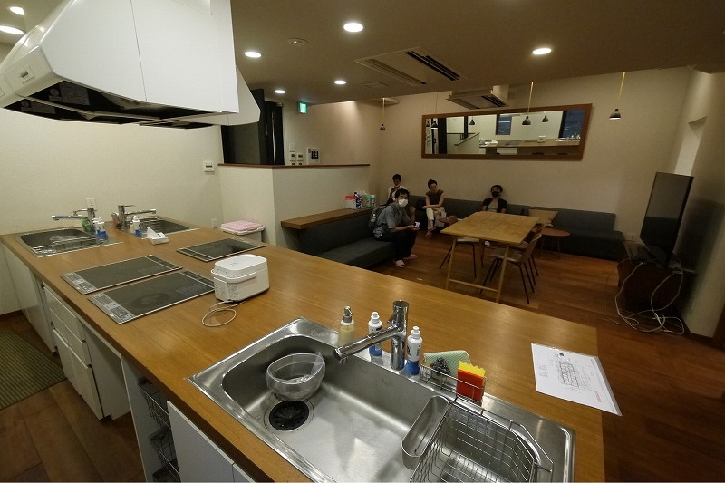 ▲(After)キッチンスペースはBeforeと同様なものの、作業スペースを確保して広々を料理ができる空間に。複数人での料理もしやすくなりました。さらにキッチンを1台追加で設置し混雑を軽減しました。また、ル・クルーゼの鍋やバルミューダのトースターなど充実した調理器具で料理を楽しめる環境になっています。